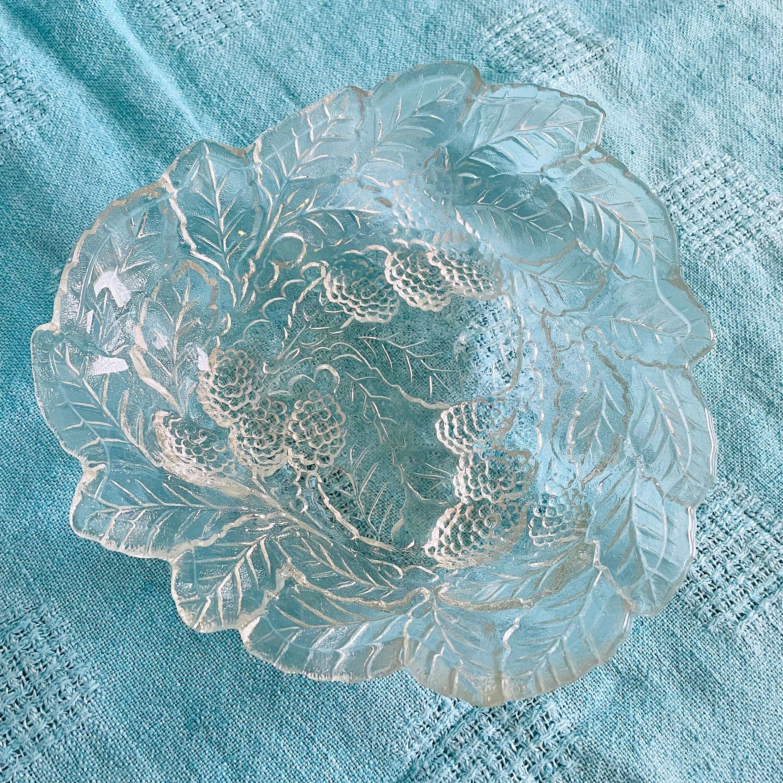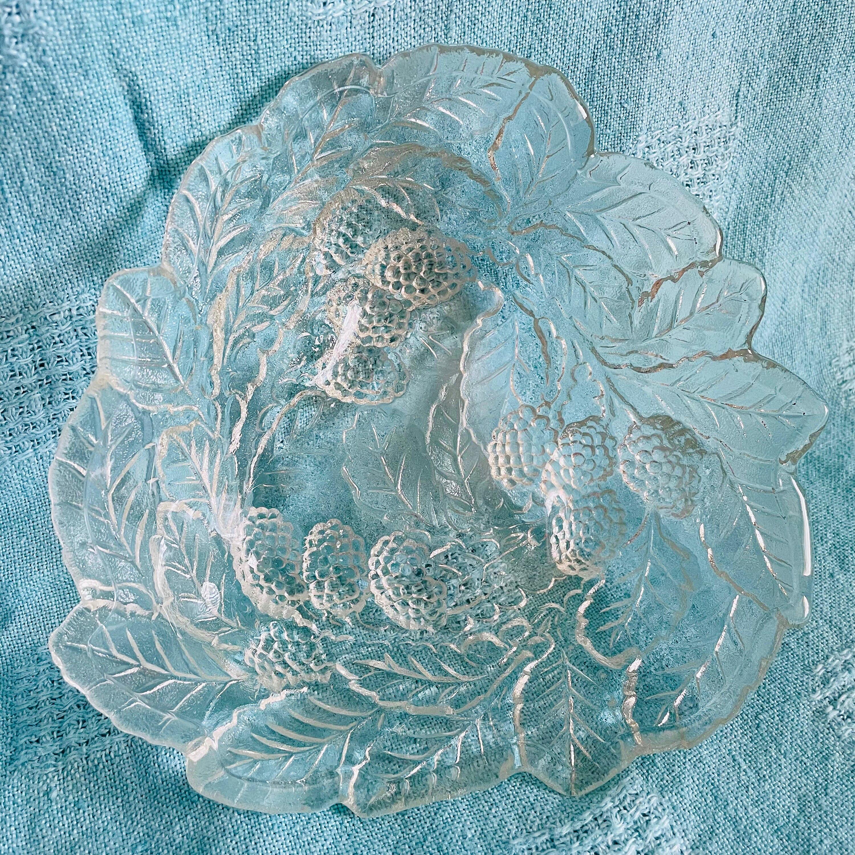 Condition: This dish is in excellent preloved vintage condition, with no chips, cracks, or repairs. The mould lines from early manufacturing are a bit sharp in places, as is expected with Depression glass, and more noticeable here due to the intricate Loganberry pattern. These details enhance the piece’s handmade character and authenticity. A sparkling example of 1920s glassware, it would also make a thoughtful gift for a wedding, housewarming, hostess, or special occasion.