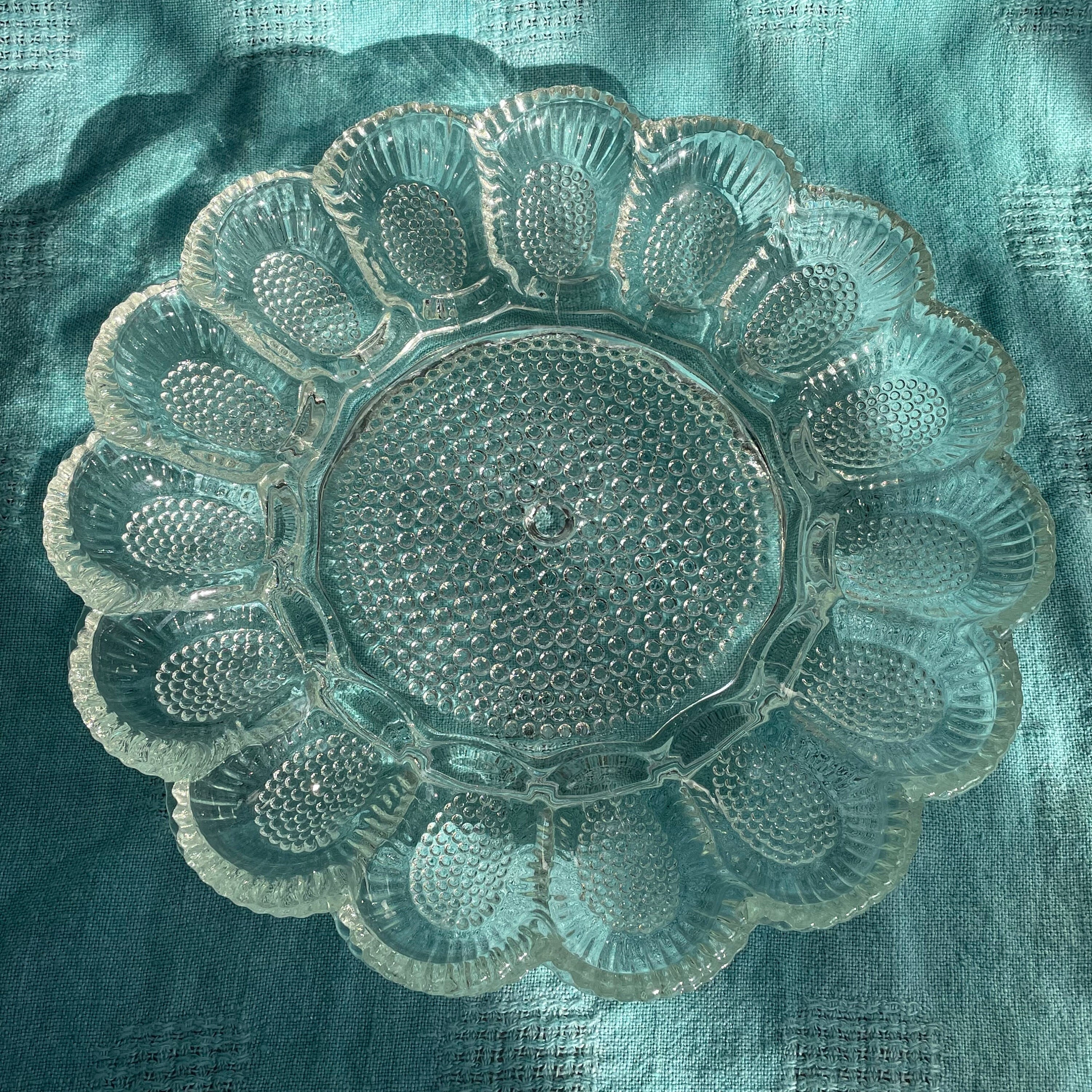Designed with a raised hobnail pattern on the underside, this sparkling tray holds 15 deviled egg halves with a generous center section perfect for relishes, pickles, crudités, or even seafood on ice. Its versatile design makes it equally stunning filled with chocolate-covered strawberries, oysters, or hors d’oeuvres — a true entertaining essential!