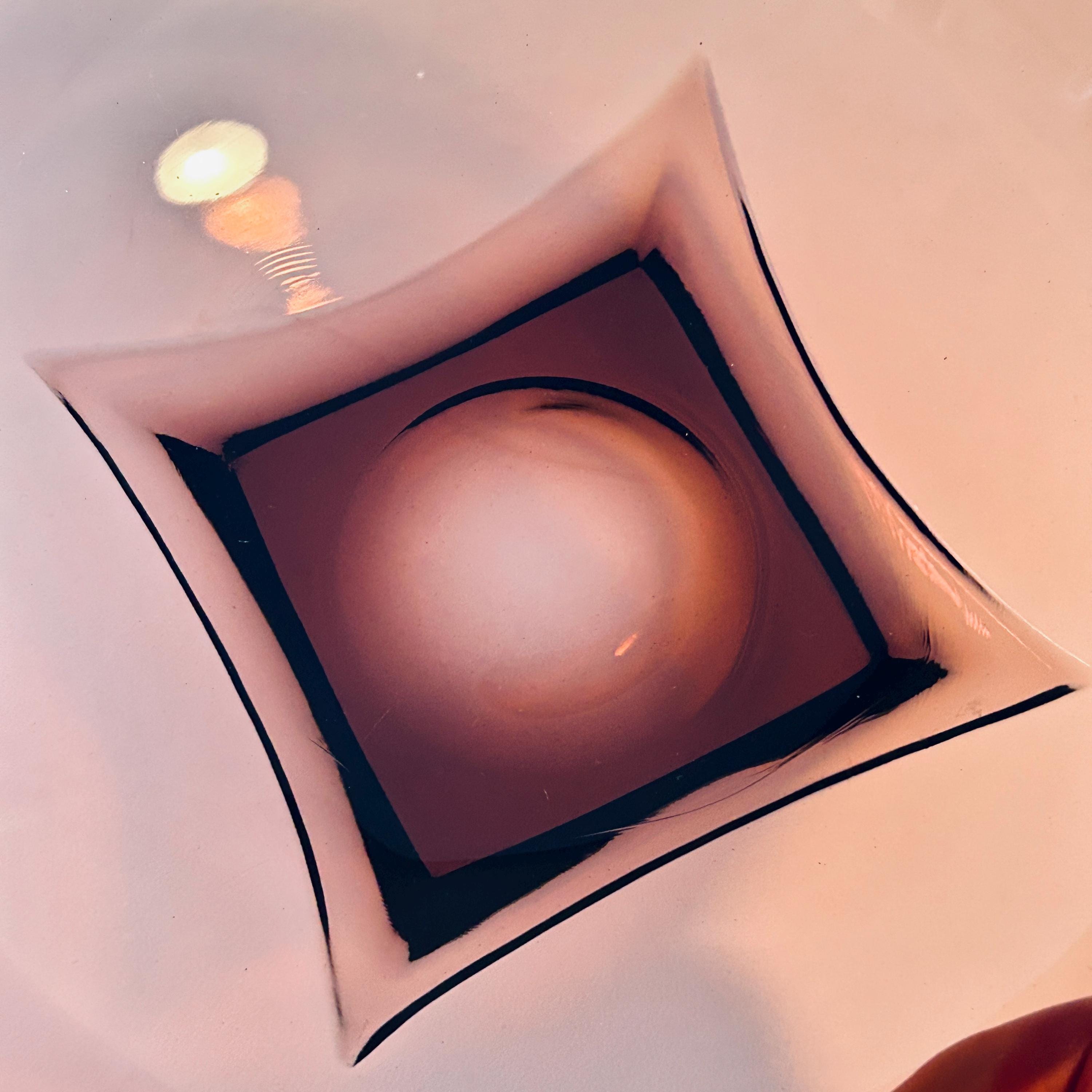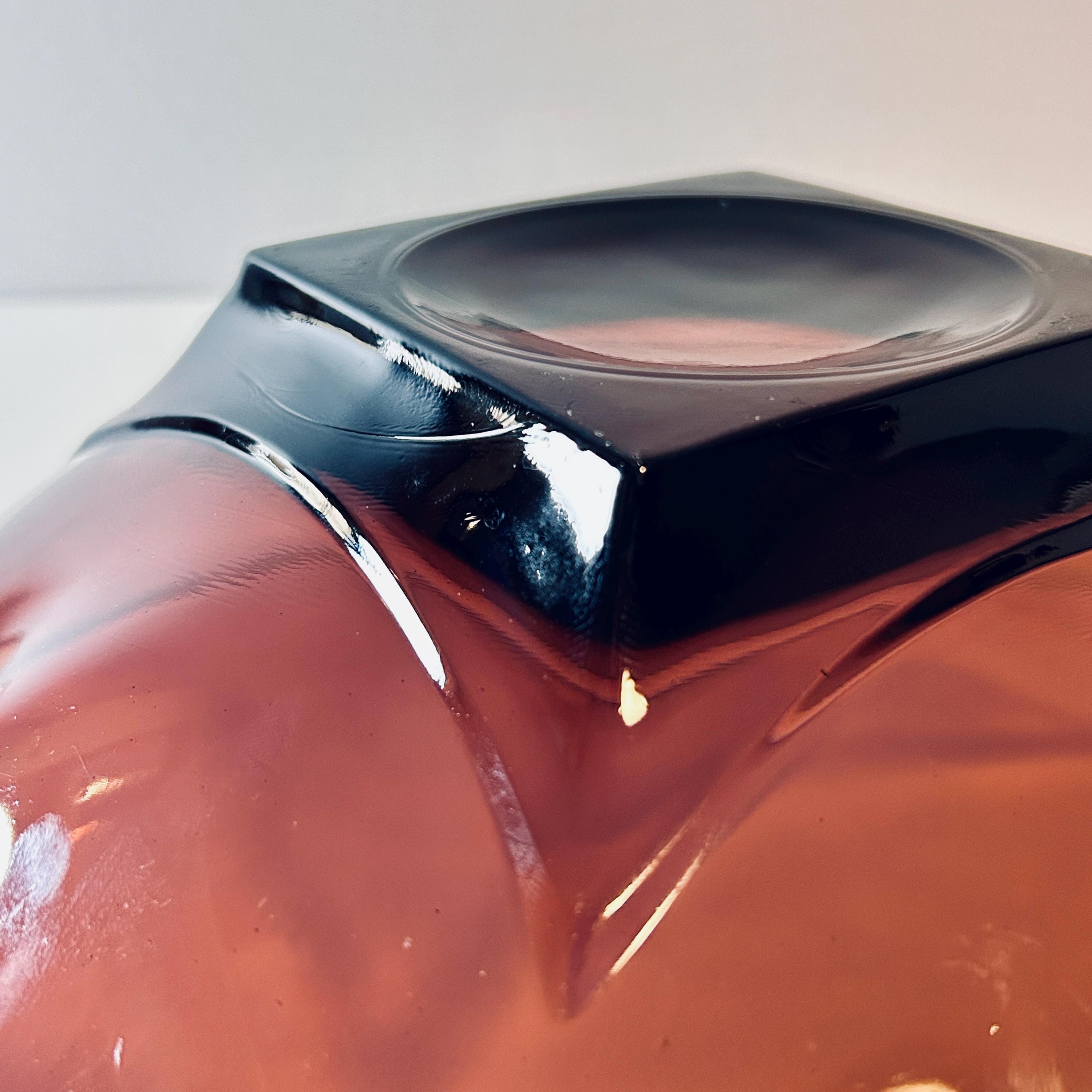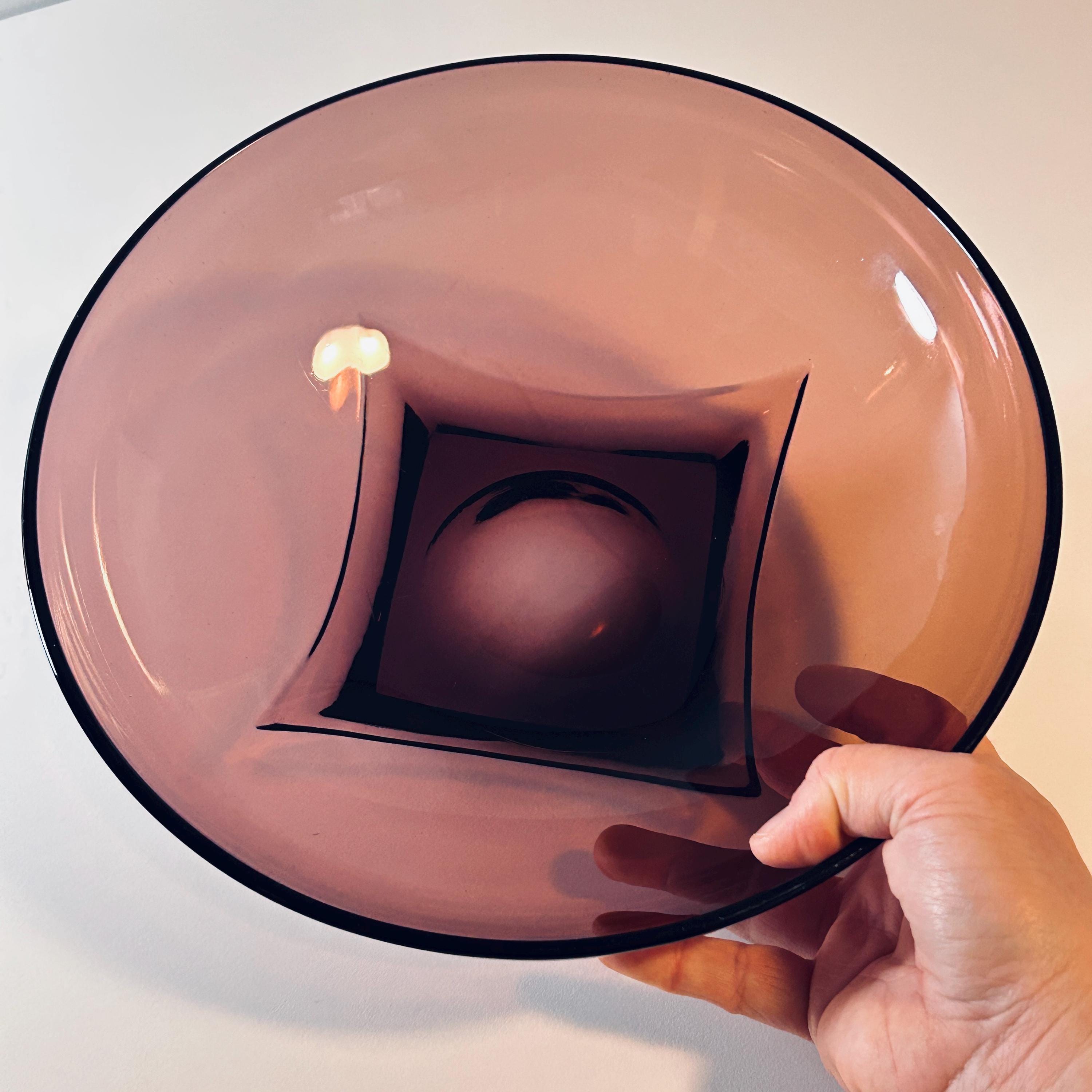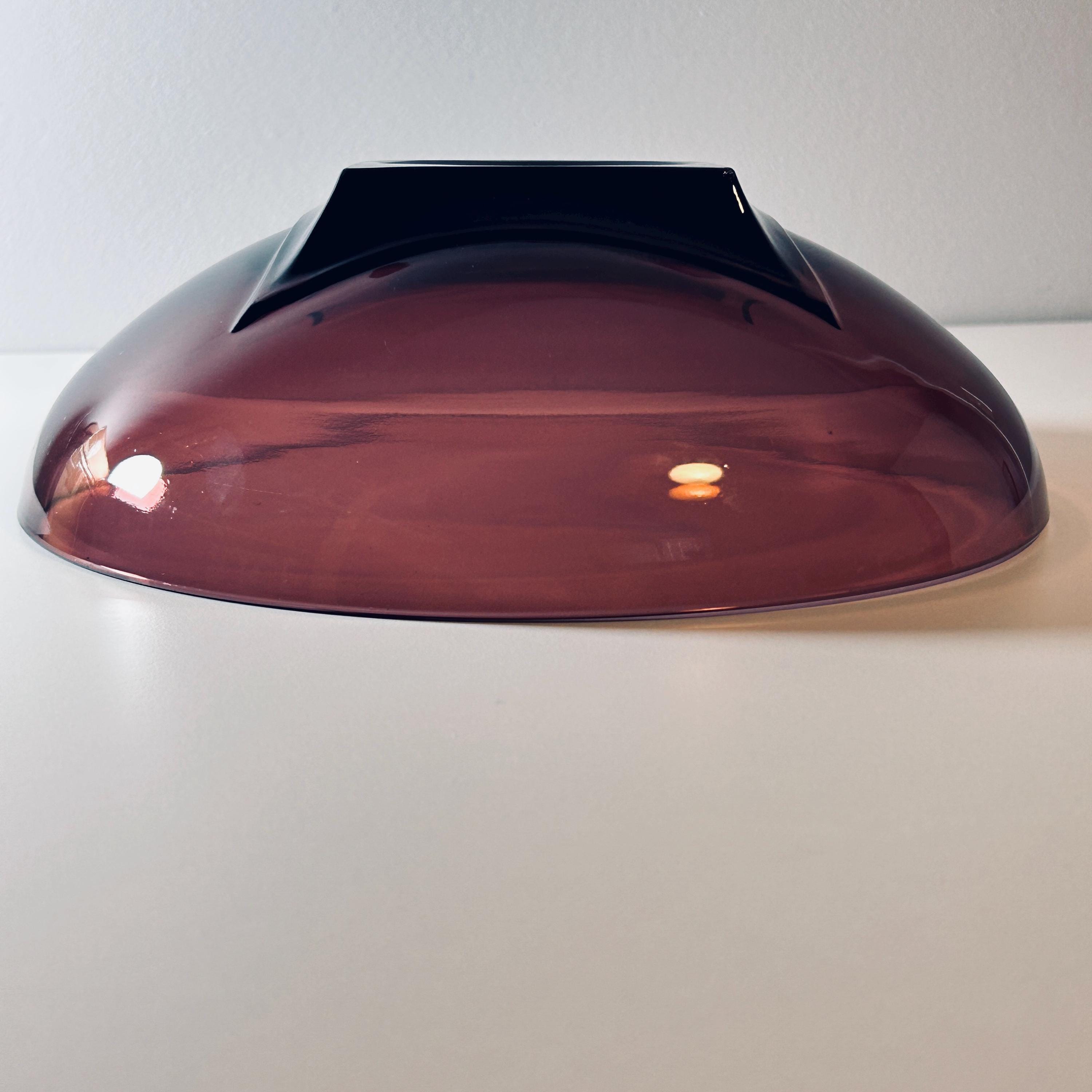When styled in natural light, the glass reveals a deep, wine-toned translucency—equally striking as a functional serving piece or displayed as a standalone object. Larger examples like this 11" form are especially impactful, offering both scale and visual weight.