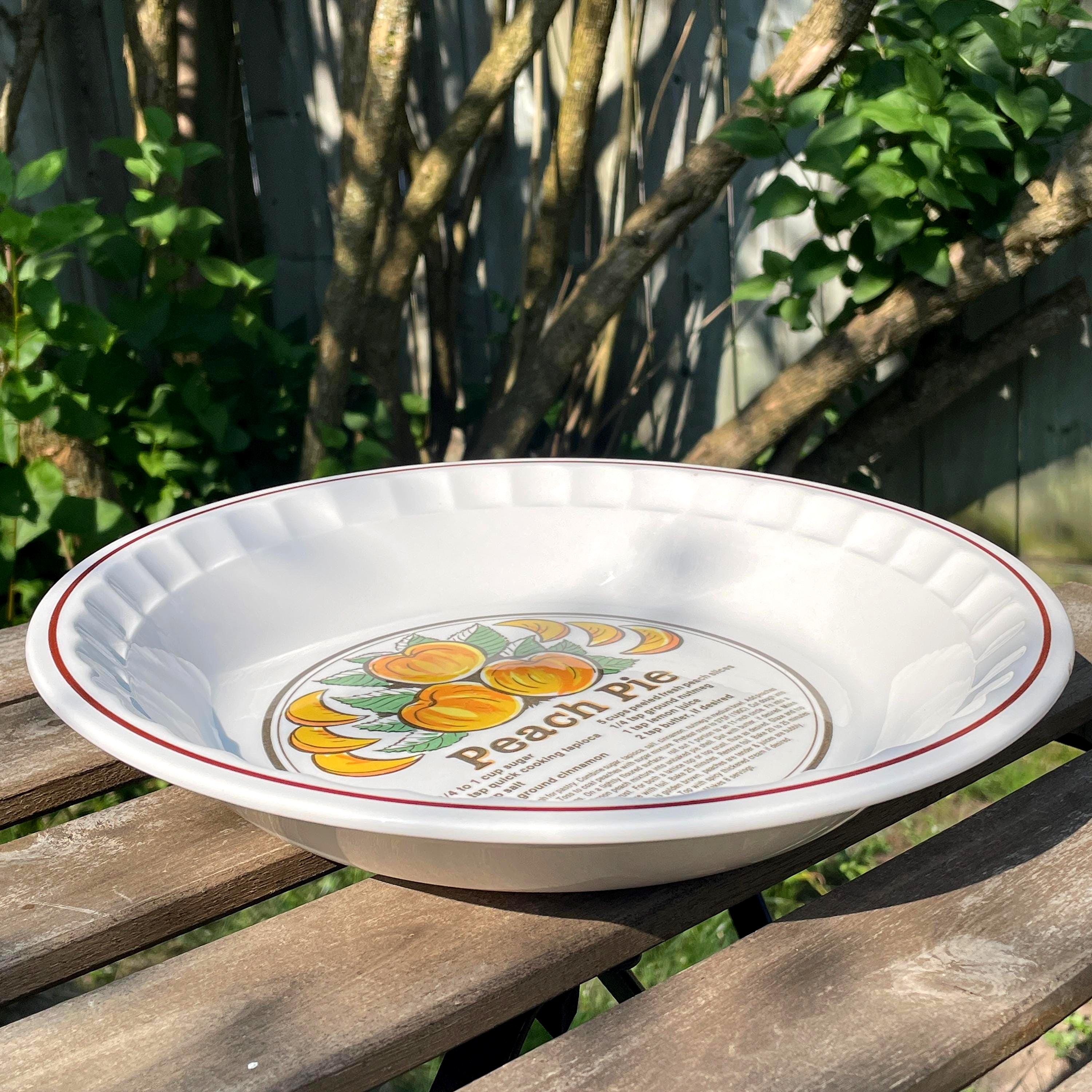 Add a pinch of vintage charm and a whole lot of cozy to your kitchen with this adorable ceramic pie plate from the Manoir Collection. Featuring a full Peach Pie recipe printed right on the interior, this handcrafted oven-safe dish brings a perfect blend of form and function — from oven to table to dishwasher.