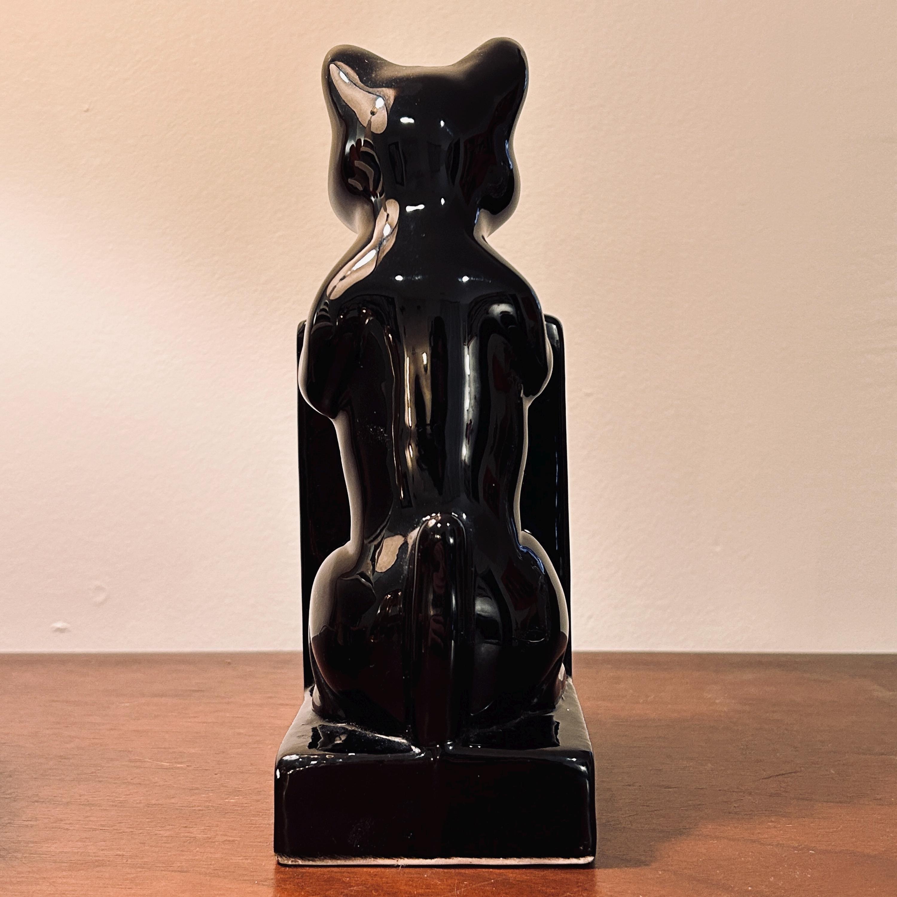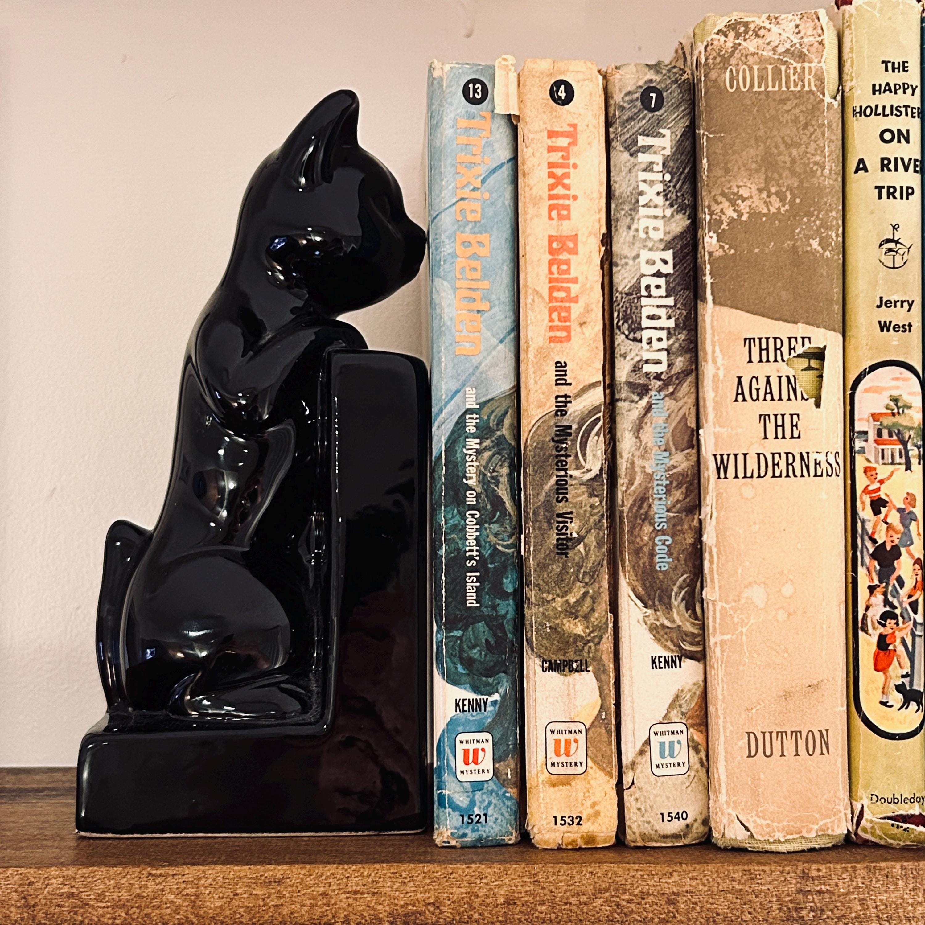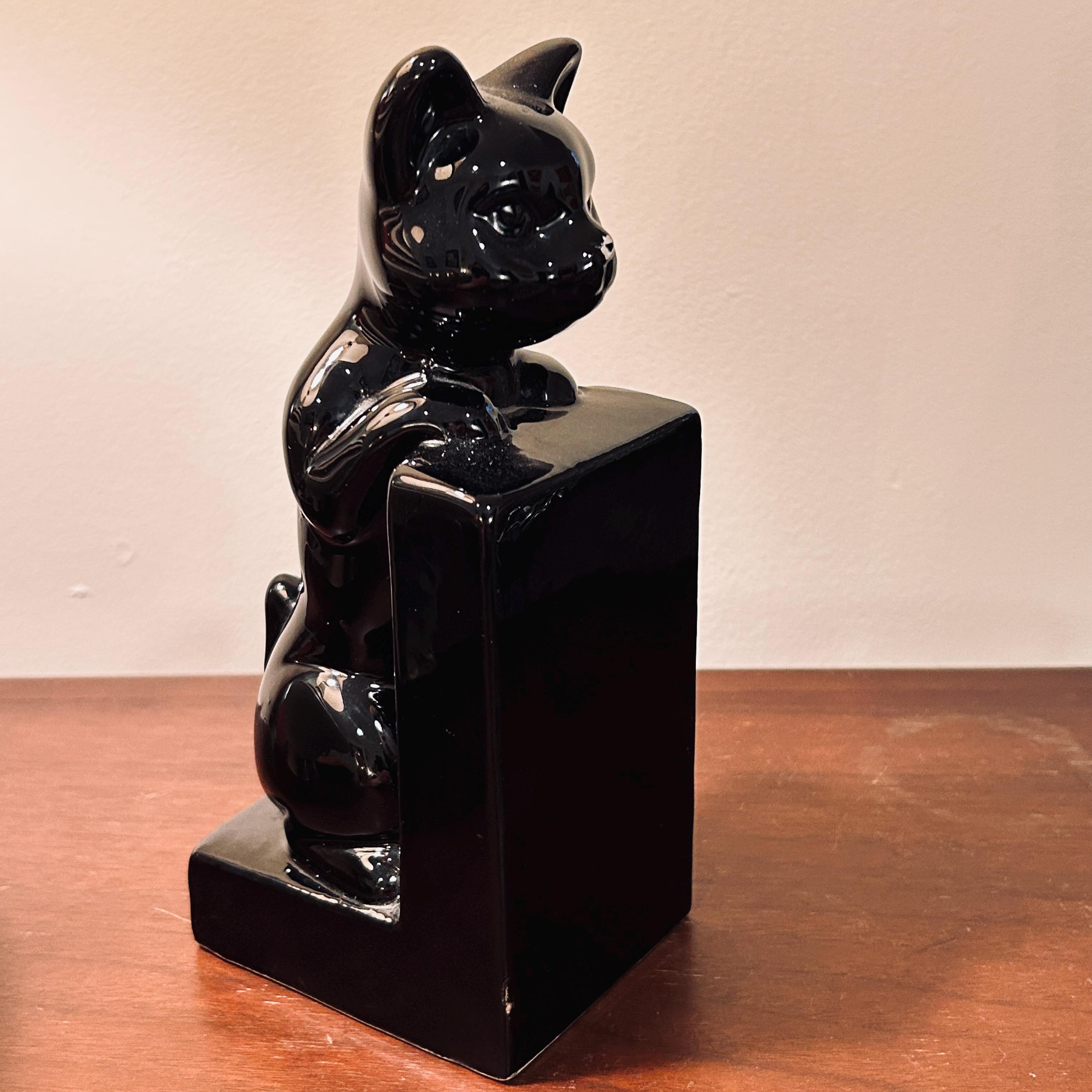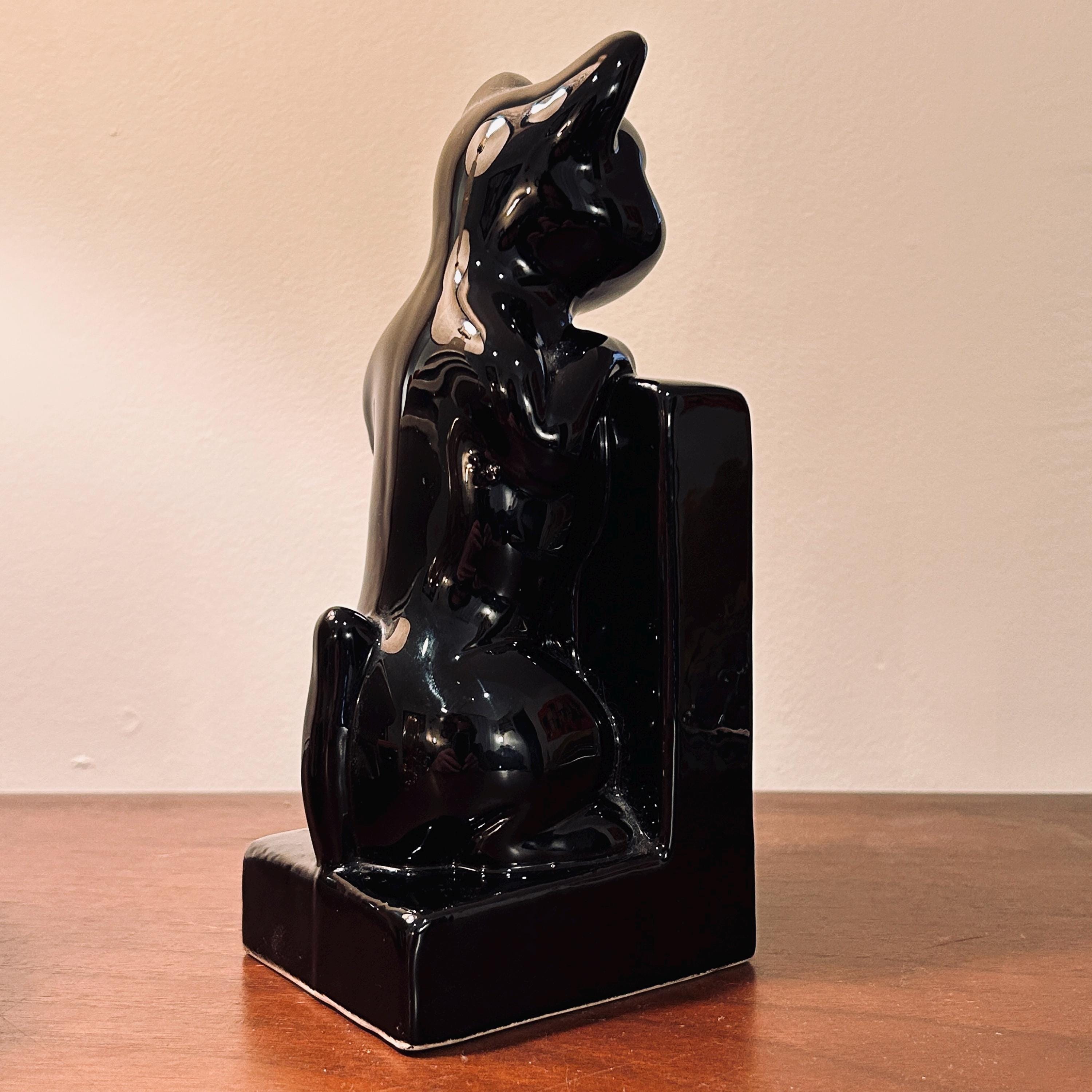 Originally designed as part of a pair, this is a single surviving bookend, lending it a standalone, object-like quality. Its deep black finish and classic feline silhouette translate effortlessly across interiors, from nostalgic and eclectic to more minimal, moody, or seasonally styled spaces.