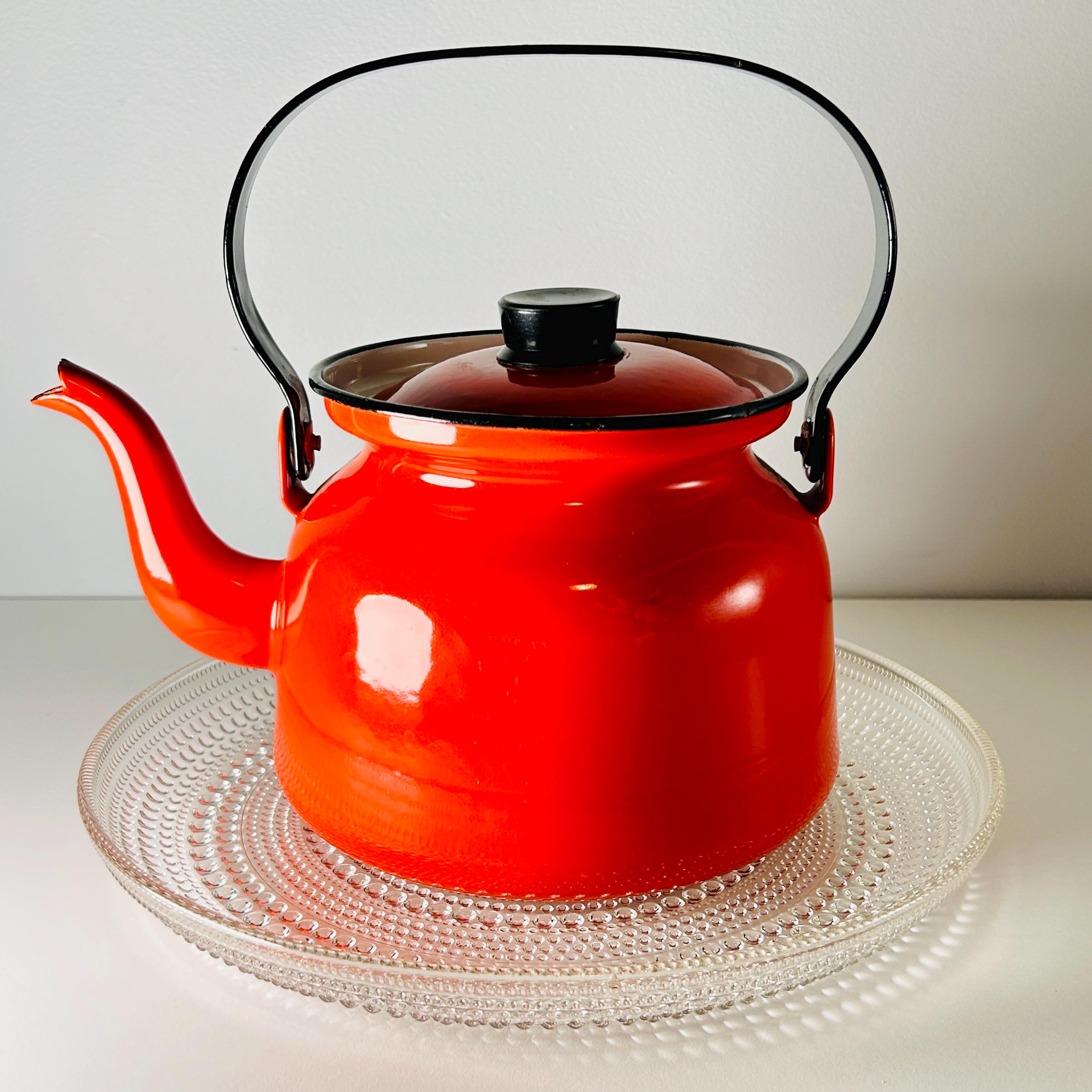 An iconic expression of mid-century Finnish design, this bold red enamel kettle was designed by Kaj Franck for Finel of Finland. Celebrated for his philosophy of functional simplicity and enduring form, Franck’s designs remain cornerstones of Scandinavian modernism—and this piece is no exception.